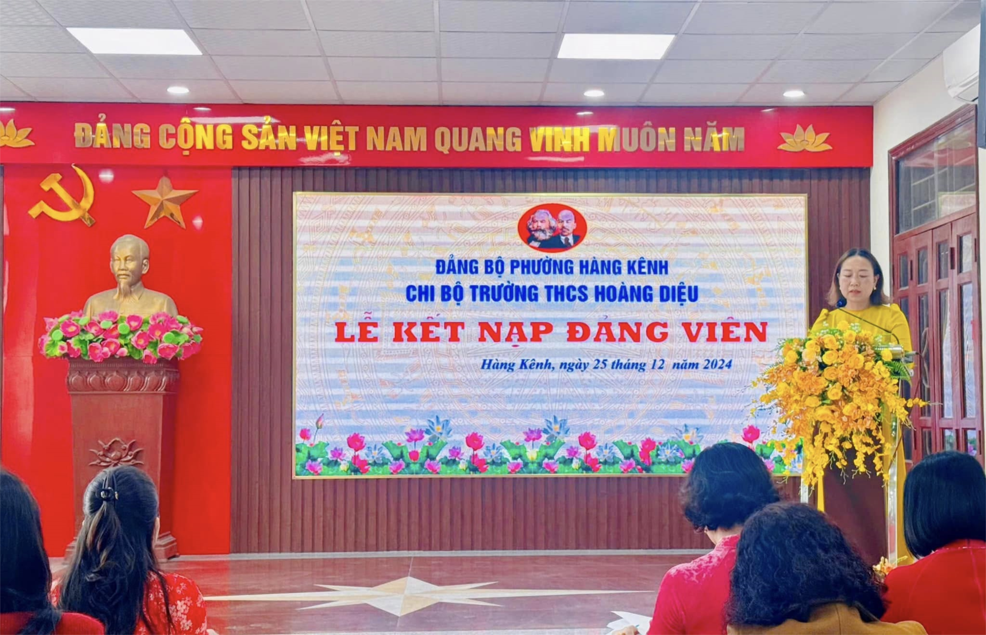Phát biểu tại buổi lễ, đồng chí Bí thư Chi bộ đánh giá cao những nỗ lực, tinh thần trách nhiệm của hai đồng chí Trần Thị Kim Dung và Trần Thị Thủy Vân trong quá trình công tác, học tập, và rèn luyện. Đồng thời, đồng chí nhấn mạnh vai trò, trách nhiệm của người Đảng viên trong việc lan tỏa những giá trị tích cực, góp phần nâng cao chất lượng giáo dục của nhà trường.