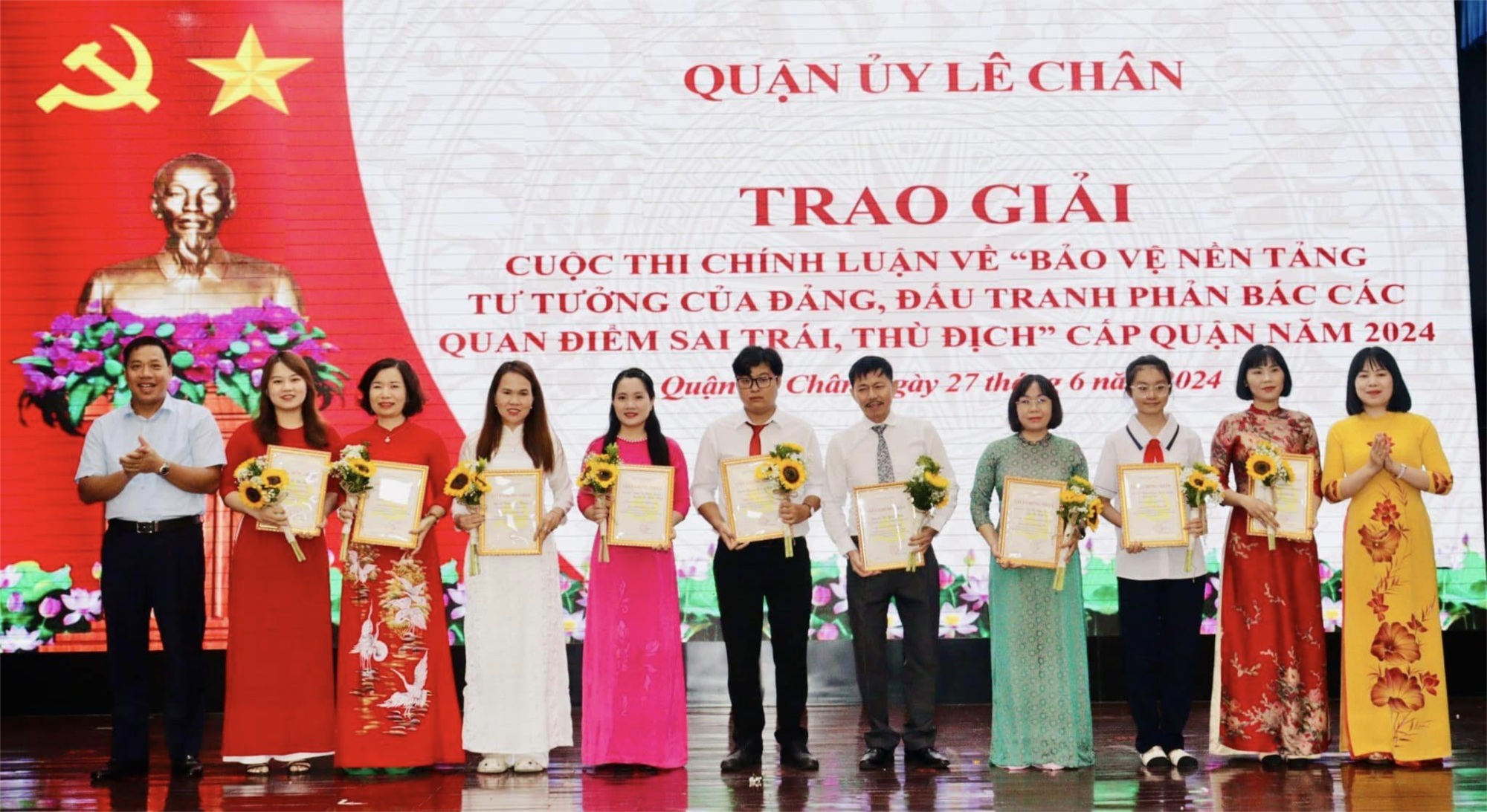 Chiều 27/6/2024, Quận ủy Lê Chân tổ chức Hội nghị tổng kết, trao giải Cuộc thi chính luận về "Bảo vệ nền tảng tư tưởng của Đảng, đấu tranh phản bác các quan điểm sai trái, thù địch" cấp quận năm 2024.
