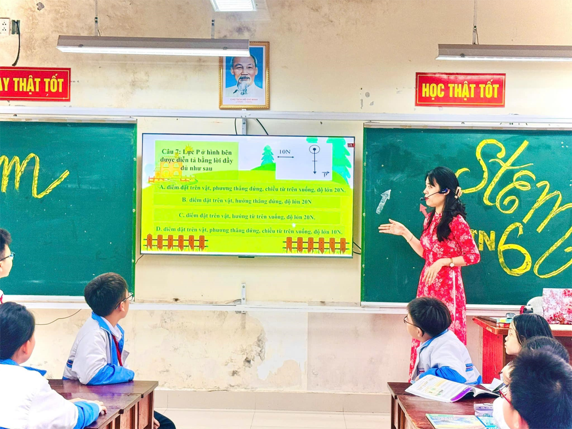 Câu hỏi này đã kích thích tư duy của học sinh, khiến các em hào hứng đưa ra nhiều ý tưởng sáng tạo. Sau đó, cả lớp cùng tìm hiểu về cách biểu diễn lực bằng mũi tên trong vật lý, tạo tiền đề cho hoạt động chế tạo mũi tên nam châm.