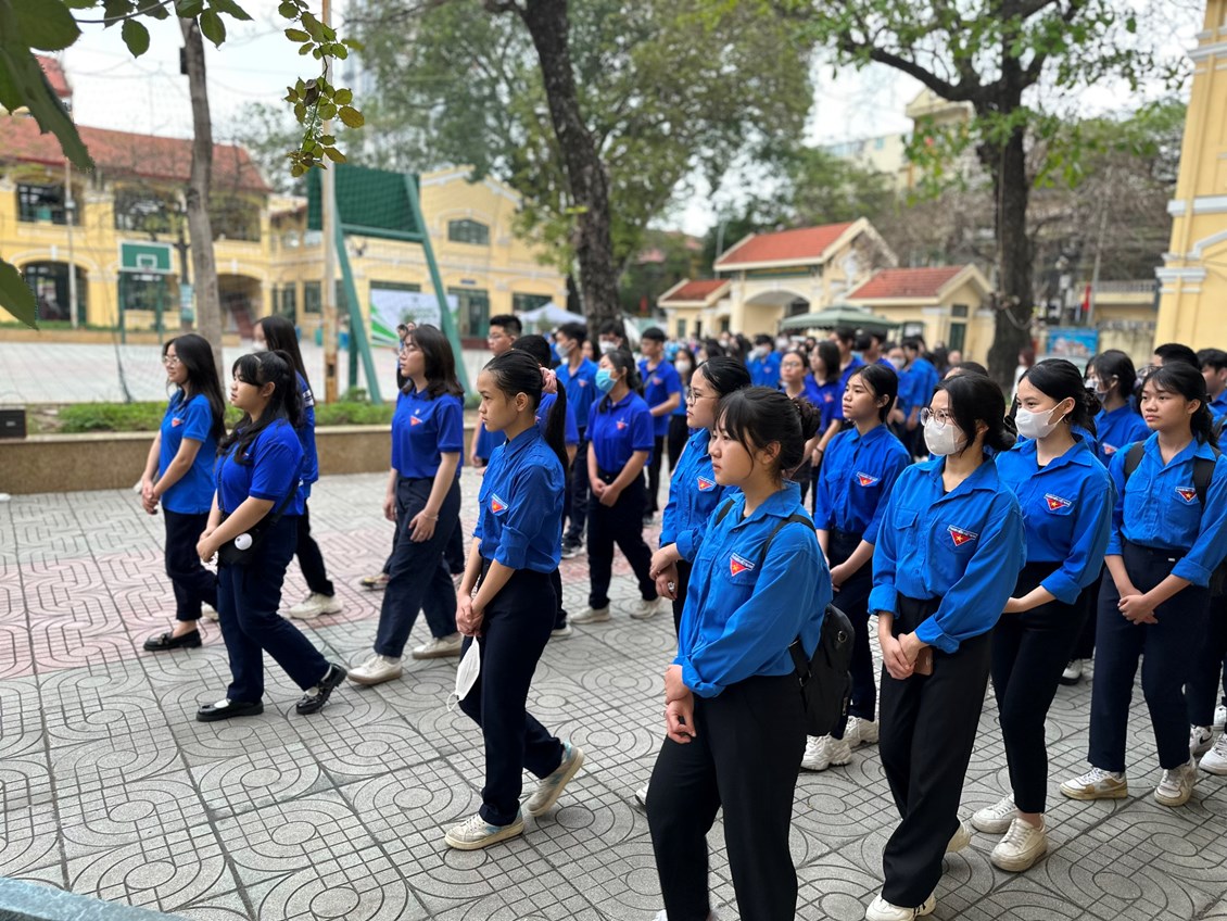 Chiều ngày 20/3, hưởng ứng Kế hoạch tổ chức Ngày hội “Tiến bước lên Đoàn quận Lê Chân” gắn với “Hành trình giáo dục truyền thống” nhân dịp kỉ niệm 92 năm ngày thành lập Đoan TNCS Hồ Chí Minh (26/3/1931-23/3/2023), các em học sinh tiêu biểu của trường THCS Hoàng Diệu đã được tham gia thăm quan, học tập tại điểm trường THPT Ngô Quyền. Tại đây các em được ôn lại truyền thống tổ chức Đoàn nhân dịp kỷ niệm 92 năm ngày thành lập Đoàn TNCS Hồ Chí Minh (26/3/1931-26/3/2023); thăm quan địa chỉ đỏ tại Trường THPT Ngô Quyền – 1 trong 2 địa chỉ thành lập chi bộ Đoàn đầu tiên trong cả nước và sinh hoạt truyền thống tại phòng Truyền thống và Hội trường của nhà trường, các công trình thanh niên của Đoàn trường THPT Ngô Quyền. Bên cạnh đó các em còn được tham gia chuyên đề thanh niên “Ngô Quyền’s got talent” với nhiều tiết mục xuất sắc trong không khí vui tươi và tràn ngập niềm vui và sự phấn khởi. Hi vọng khí thế của những ngày tháng 3 – tháng thanh niên sẽ tiếp tục lan tỏa tới các chi đội, động viên các em học sinh luôn hăng say học tập, luôn tích cực trong các hoạt động cùng “Tiến bước lên Đoàn”.