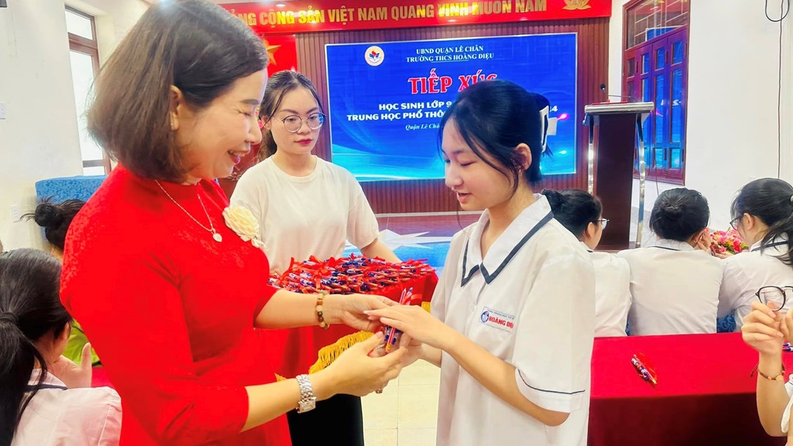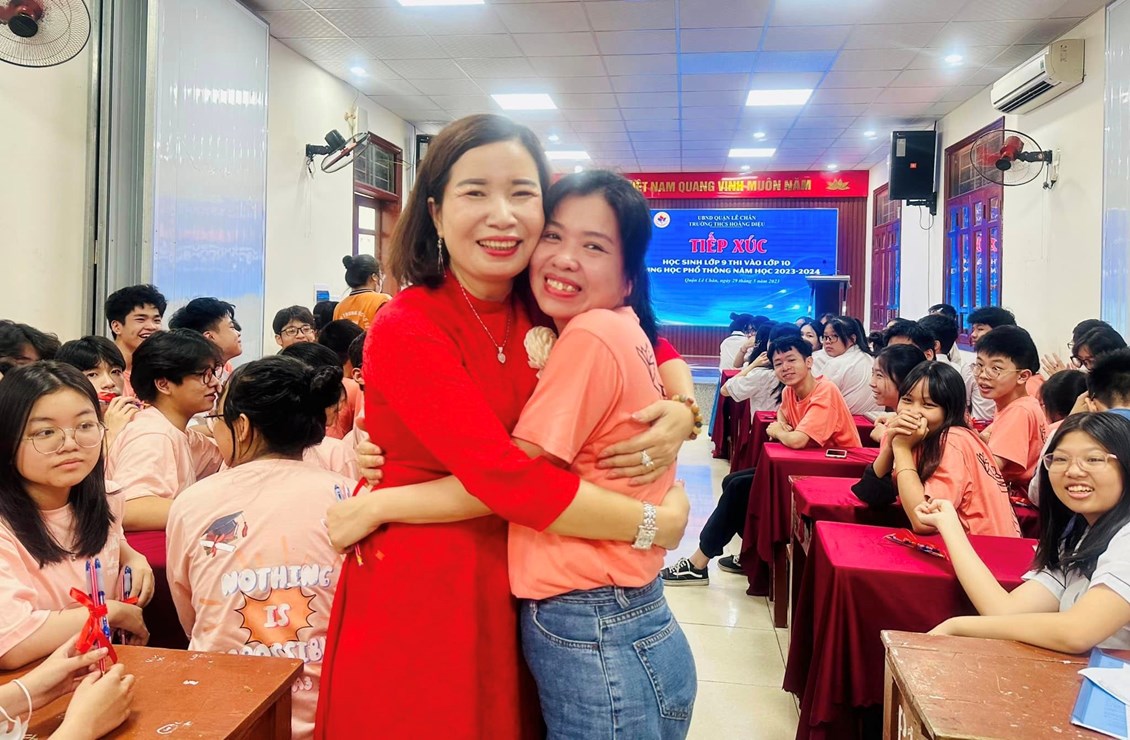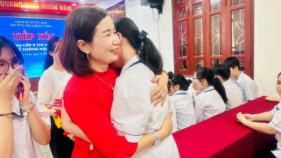 Trước mắt các em là bước ngoặt vô cùng quan trọng trong cuộc đời – Kỳ thi tuyển sinh vào lớp 10 THPT năm học 2023 – 2024. Với tinh thần tất cả vì học sinh thân yêu, sáng nay 29/05/2023 trường THCS Hoàng Diệu đã tổ chức buổi “Tiếp xúc với các học sinh lớp 9” tham gia dự thi. Nhà giáo Trần Thị Kim Xuyến – Bí thư Chi bộ Hiệu trưởng nhà trường đã thay mặt các thầy cô giáo dặn dò các em rất cẩn thận, chi tiết những điều cần lưu ý khi đi thi. Buổi tiếp xúc diễn ra trong không khí ấm áp, thân thương, tràn đầy cảm xúc nhưng không kém phần trang trọng! Những cái ôm nồng thắm, những cái bắt tay thật chặt cùng món quà ý nghĩa của cô giáo Hiệu trưởng đã tiếp thêm động lực và may mắn cho các em trong kỳ thi sắp tới! Những ánh mắt đỏ hoe, những giọt nước mắt đã rơi, tuy không nói nhưng chắc hẳn các em đều cảm nhận được sự quan tâm và tình cảm yêu thương vô bờ bến mà các thầy cô dành cho mình…