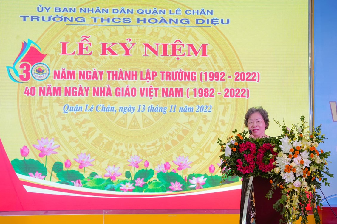 Những giây phút cuối cùng của buổi lễ lắng lại trong bài phát biểu của Nhà giáo Lê Thị Thư - Nguyên Bí thư Chi bộ, Hiệu trưởng Nhà trường giai đoạn 1992-2006 và chị Nguyễn Thị Vân Anh - cựu học sinh niên khóa 1992 - 1996, Chủ tịch UBND phường Hàng Kênh. Mái trường THCS Hoàng Diệu là nơi lưu giữ những ký ức đẹp của một thời hoa niên cắp sách tới trường, của những tháng ngày vất vả nhưng nụ cười luôn rạng rỡ trên môi. Từ mái trường này, bao thế hệ học sinh đã trưởng thành khôn lớn dưới sự dìu dắt, chỉ bảo của các thầy cô giáo, bao cánh chim đã bay đến các miền đóng góp, dựng xây Tổ quốc thêm đẹp giàu.