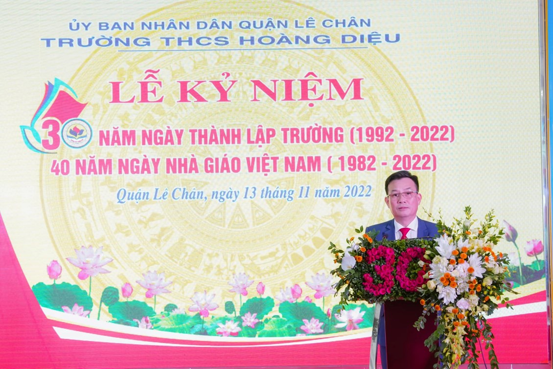 Trong không khí hân hoan, phấn khởi đó, ông Nguyễn Văn Phiệt - Phó Bí thư quận ủy, Chủ tịch UBND quận Lê Chân đã phát biểu động viên và chúc mừng thầy và trò Nhà trường.