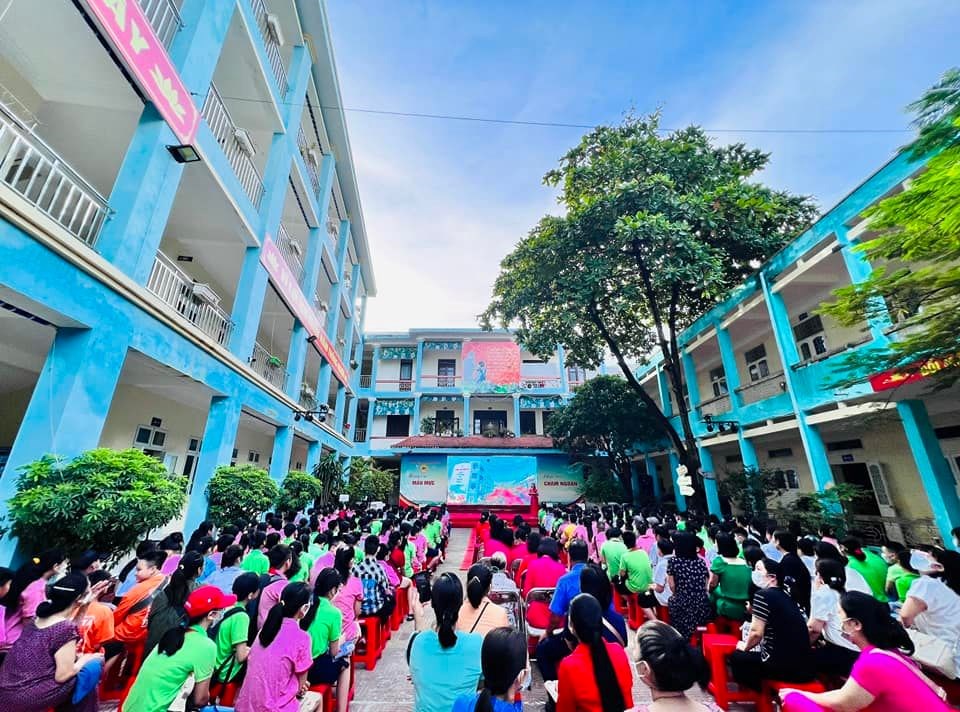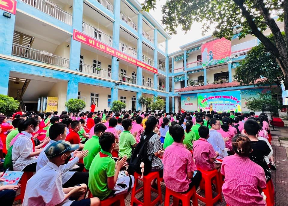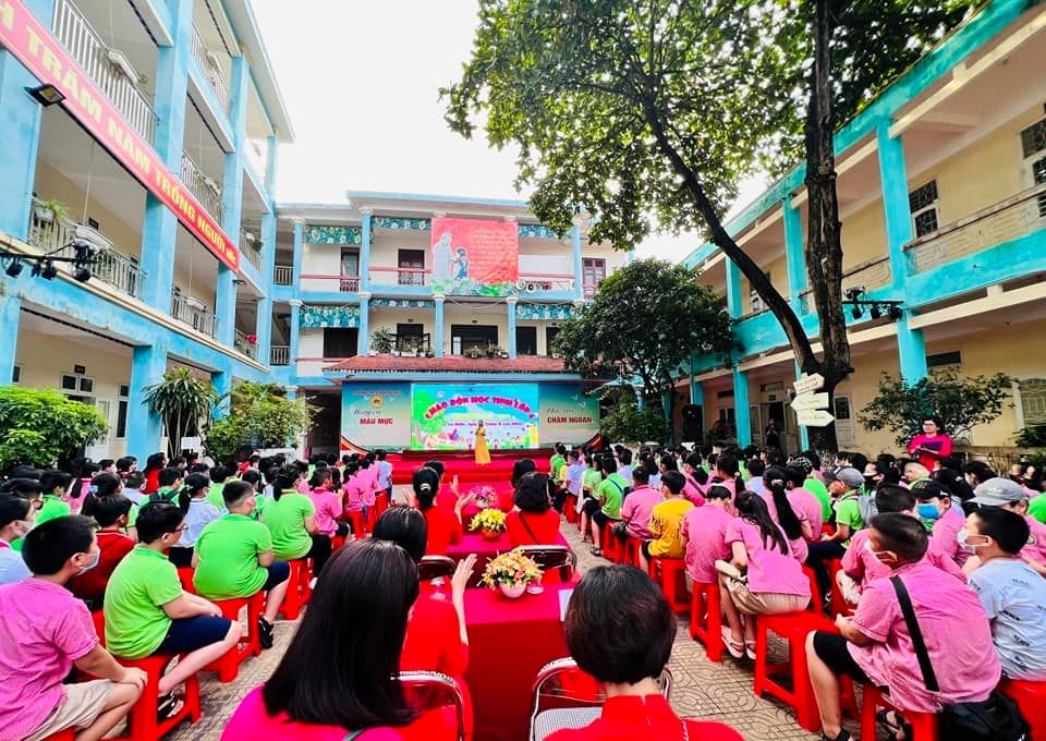Ngay từ sáng sớm, cánh cổng trường đã được mở ra đón chào phụ huynh và học sinh lớp 6 thân yêu. Đội ngũ cán bộ nhân viên, các thầy cô giáo tận tình chỉ dẫn cho học sinh vào vị trí tập trung. Dưới sự điều hành của cô giáo tổng phụ trách Đội và các giáo viên chủ nhiệm, 239 em học sinh khối 6 nhanh chóng ổn định chỗ ngồi. Các em học sinh dù còn nhiều bỡ ngỡ nhưng cũng nhanh chóng bắt nhịp cùng bầu không khí và làm quen cùng các bạn.