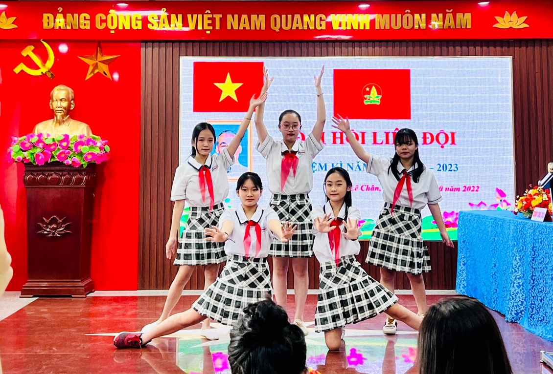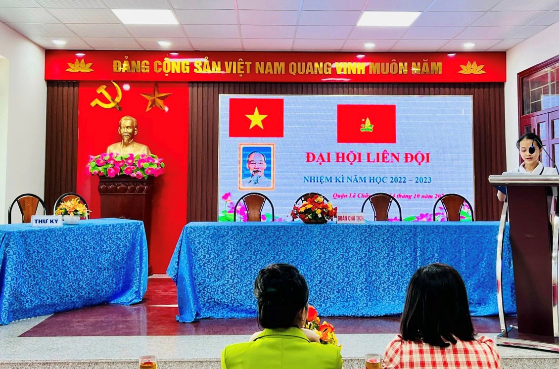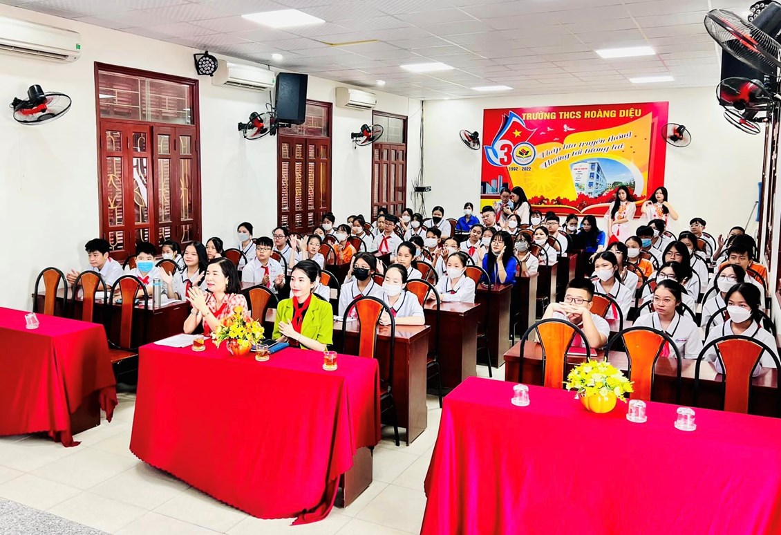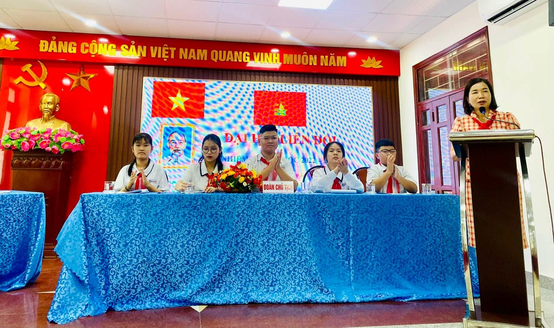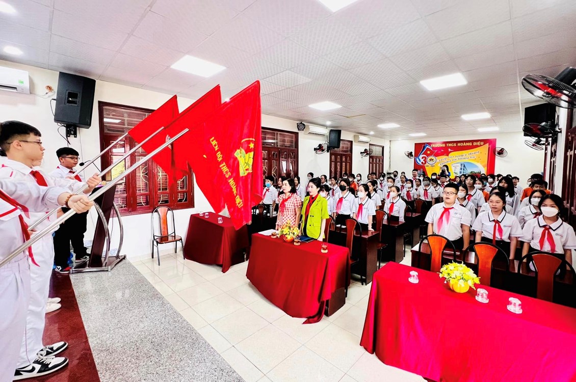 THCS Hoàng Diệu tổ chức Đại hội Liên đội nhiệm kỳ năm học 2022 – 2023. Về chung vui với Đại hội, Liên đội vinh dự đón tiếp chị Vũ Thị Hải Ngọc - Bí thư Đoàn phường, chủ tịch Hội đồng đội phường Hàng Kênh