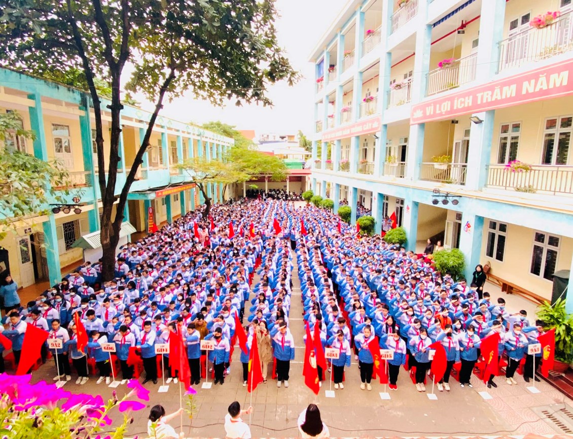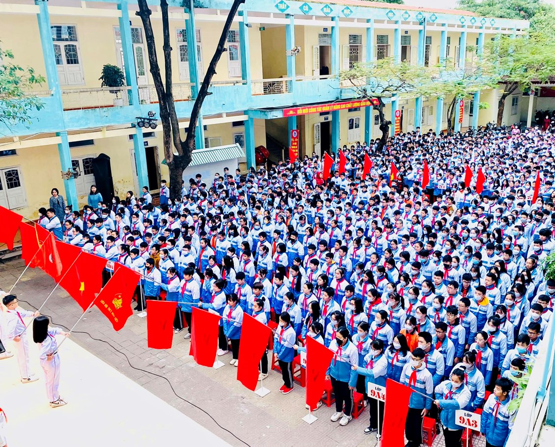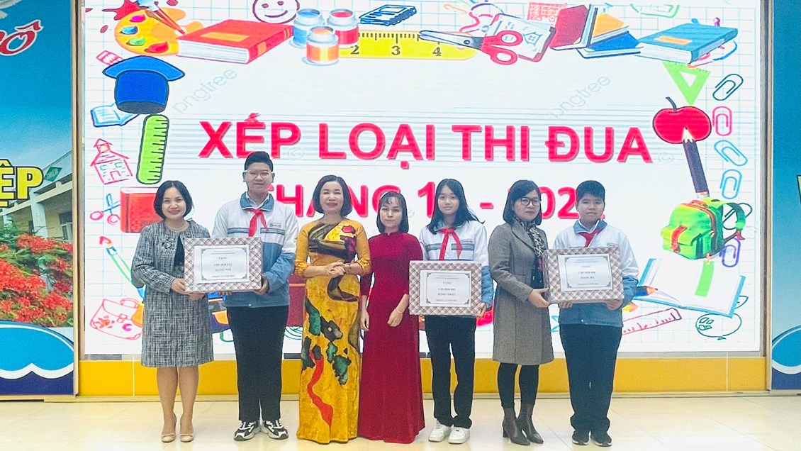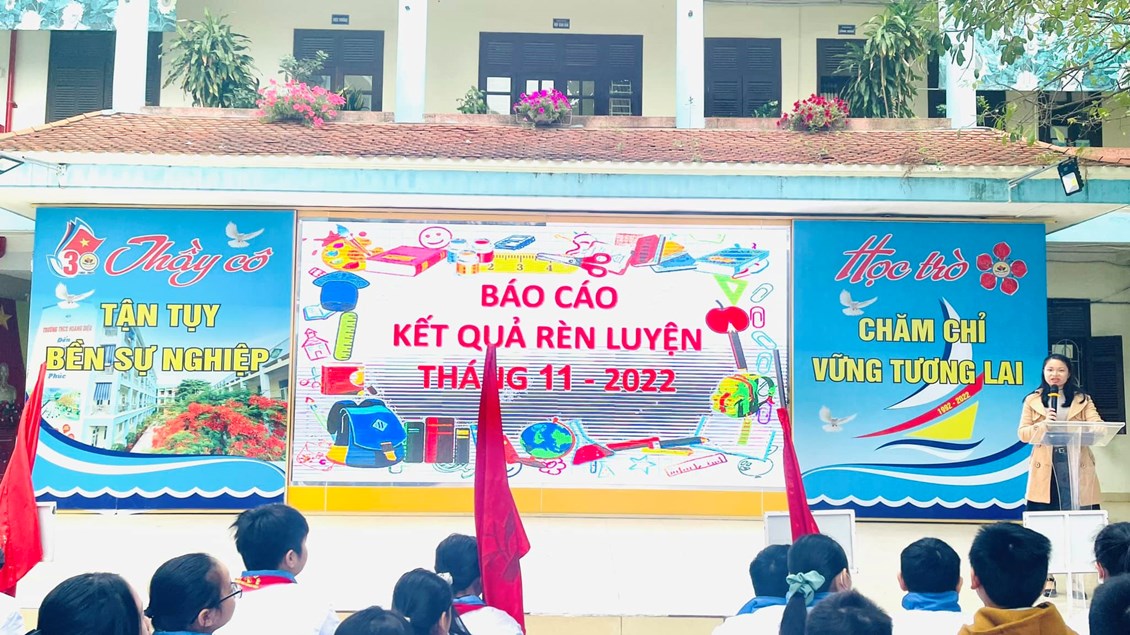 hạn chế cần khắc phụ của Liên đội trong tháng vừa qua, công bố kết quả thi đua trong tháng của các chi đội. Kết quả, cờ thi đua hạng Nhất thuộc về Chi đội 8B5, cờ thi đua hạng Nhì thuộc về Chi đội 9A1 và hạng Ba thuộc về Chi đội 8B6. Cuối buổi lễ, nhà giáo Trần Thị Kim Xuyến – Bí thư Chi bộ, Hiệu trưởng nhà trường đã biểu dương những đạt thành tích mà Liên đội đã đạt được trong tháng 11, chỉ ra những điểm tồn tại và động viên học sinh toàn trường thi đua phấn đấu trong tháng 12 để đạt những thành tích tốt hơn trong cả học tập và rèn luyện.