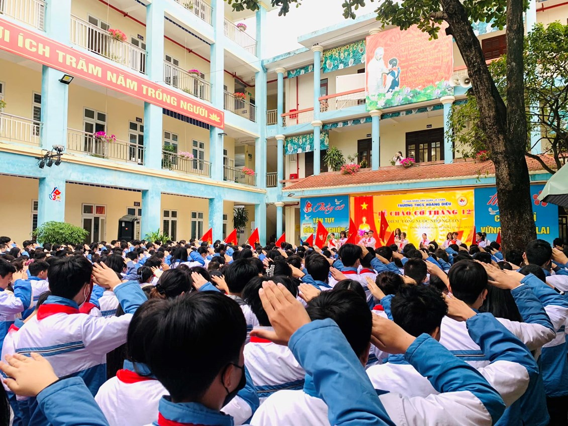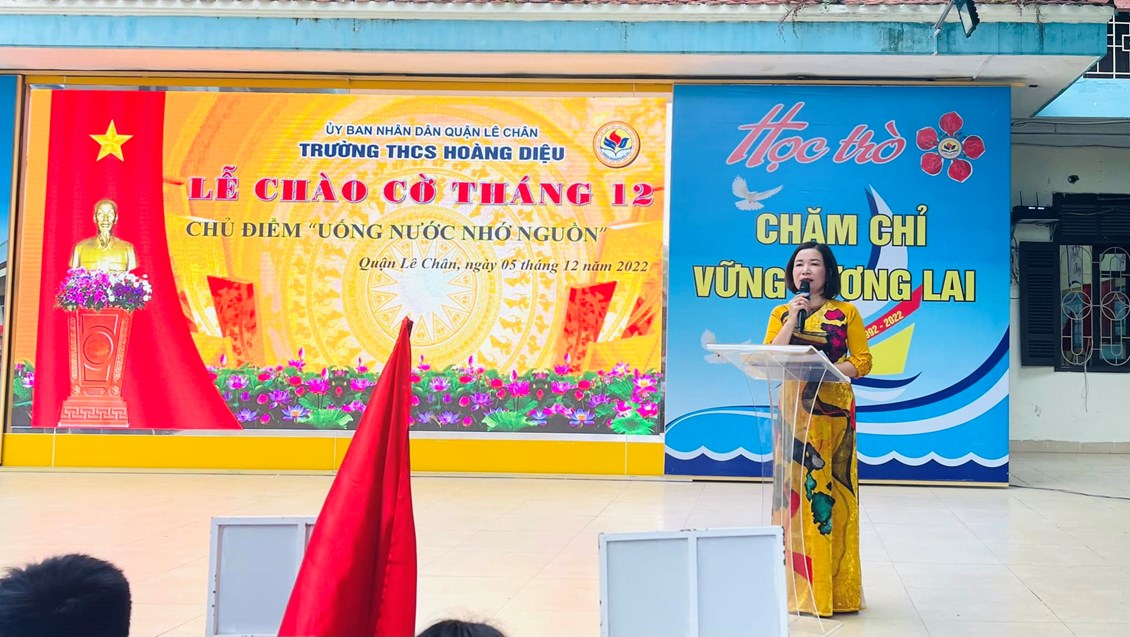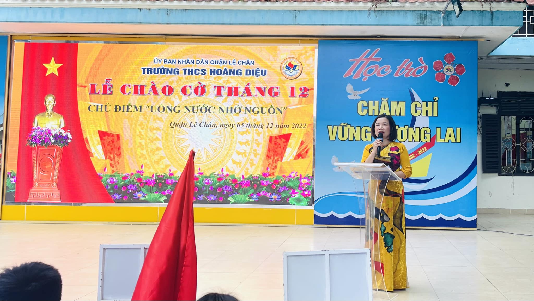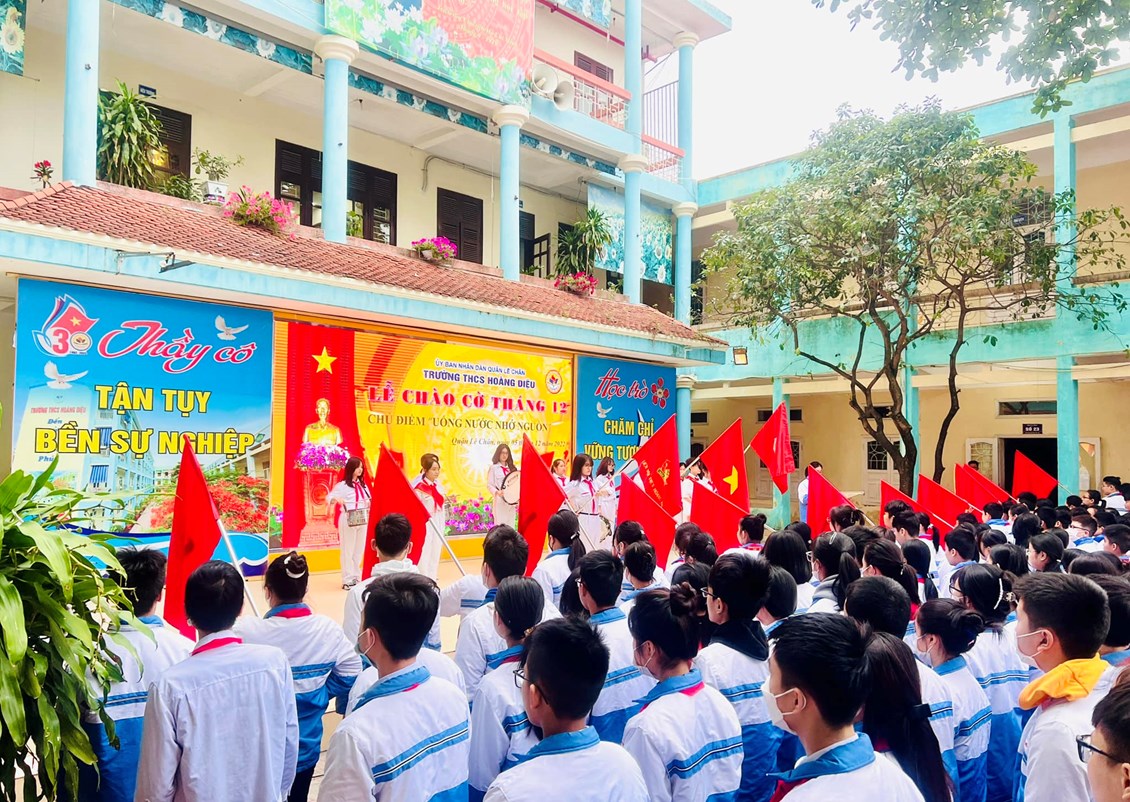 Sáng nay, ngày 05/12/2022, Liên đội trường THCS Hoàng Diệu tổ chức Lễ chào cờ đầu tháng 12 với chủ đề "Uống nước nhớ nguồn".Dưới tiết trời se lạnh của mùa đông ,bài hát Quốc ca được vang lên trong không khí trang nghiêm với tất cả niềm tự hào và phấn khởi của thầy và trò nhà trường.