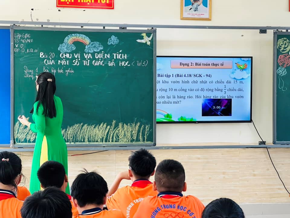 Sáng nay 26/10/2023, đại diện cho nhóm Toán 6, cô giáo Đào Hải Yến đã lên tiết dạy chuyên đề “Dạy học theo hướng đổi mới phương pháp dạy học và kiểm tra đánh giá theo định hướng phát triển năng lực học sinh qua bài Chu vi và diện tích của một số tứ giác đã học".