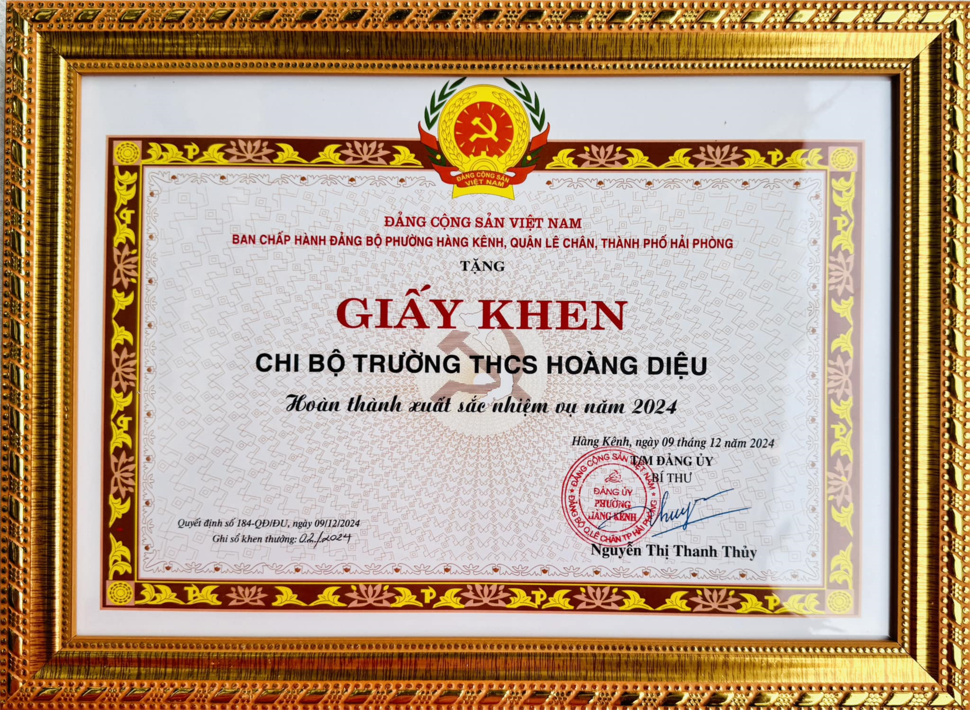 Những thành tích này là kết quả của sự lãnh đạo sáng suốt, quyết tâm đổi mới của tập thể Chi bộ, đứng đầu Cấp uỷ - Ban Giám hiệu. Với tinh thần trách nhiệm cao, Chi bộ trường THCS Hoàng Diệu đã không ngừng nâng cao chất lượng công tác Đảng, thực hiện tốt nhiệm vụ chuyên môn, đồng thời xây dựng môi trường giáo dục toàn diện và tiến bộ.