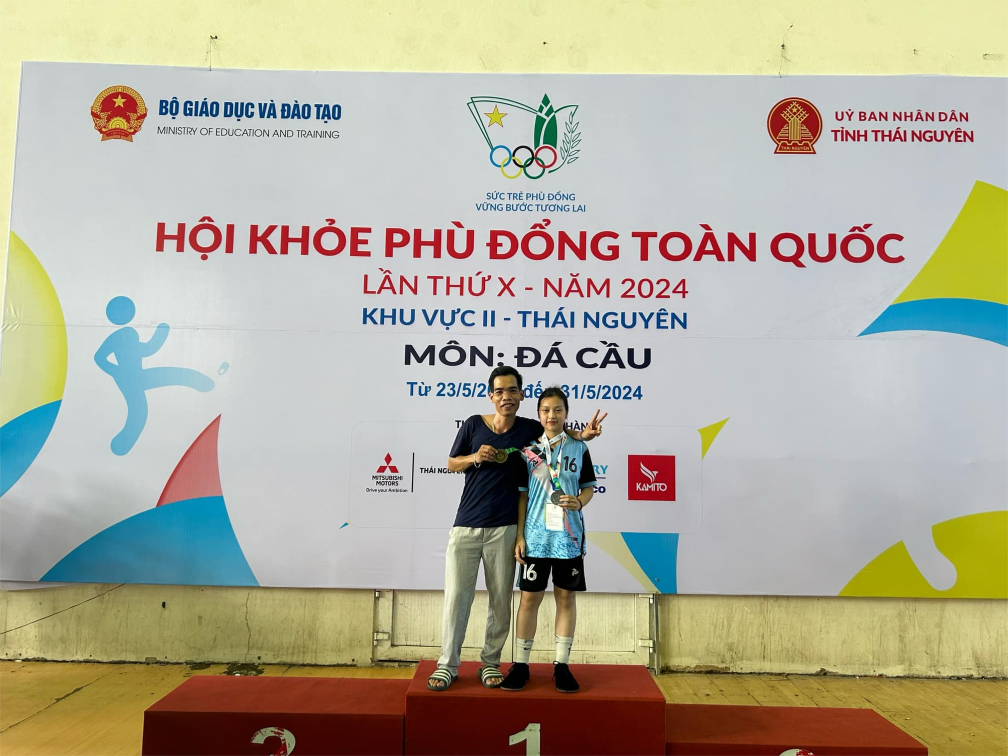 Nội dung sau cùng mặc dù rất mệt và đau chân nhưng em vẫn cố gắng và đạt được Huy chương Đồng Đơn nữ!!! Cảm ơn ý chí và nghị lực của em cùng thầy giáo Đặng Xuân Thắng!!