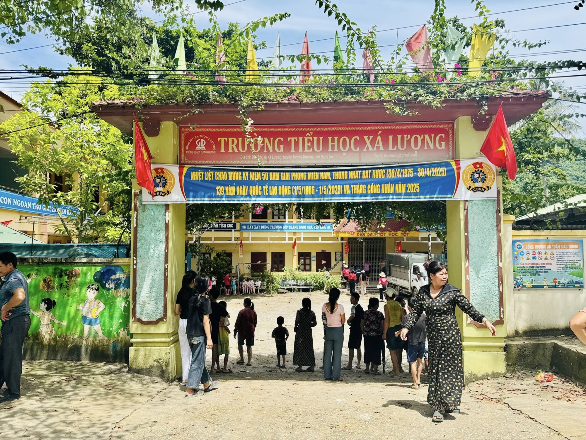 Tại Trường Tiểu học Xá Lượng, đoàn đã trao hơn 200 suất quà tới học sinh tiểu học và con em nhân dân trong bản. Những món quà nhỏ bé nhưng đong đầy tình yêu thương từ thầy cô, phụ huynh và học sinh trường Hoàng Diệu.