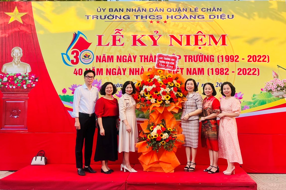 thành lập (1992 - 2022) và 40 năm ngày Nhà giáo Việt Nam. Đến dự có các đồng chí Lê Khắc Nam Phó Chủ tịch UBND thành phố; Đỗ Thị Hòa – Phó Giám đốc Sở GD&ĐT Hải Phòng; Nguyễn Văn Phiệt – Phó Bí thư Quận ủy, Chủ tịch UBND quận; Phạm Việt Anh - UVQU Phó Chủ tịch UBND quận và đại diện lãnh đạo một số Sở, ban, ngành thành phố và quận Lê Chân.