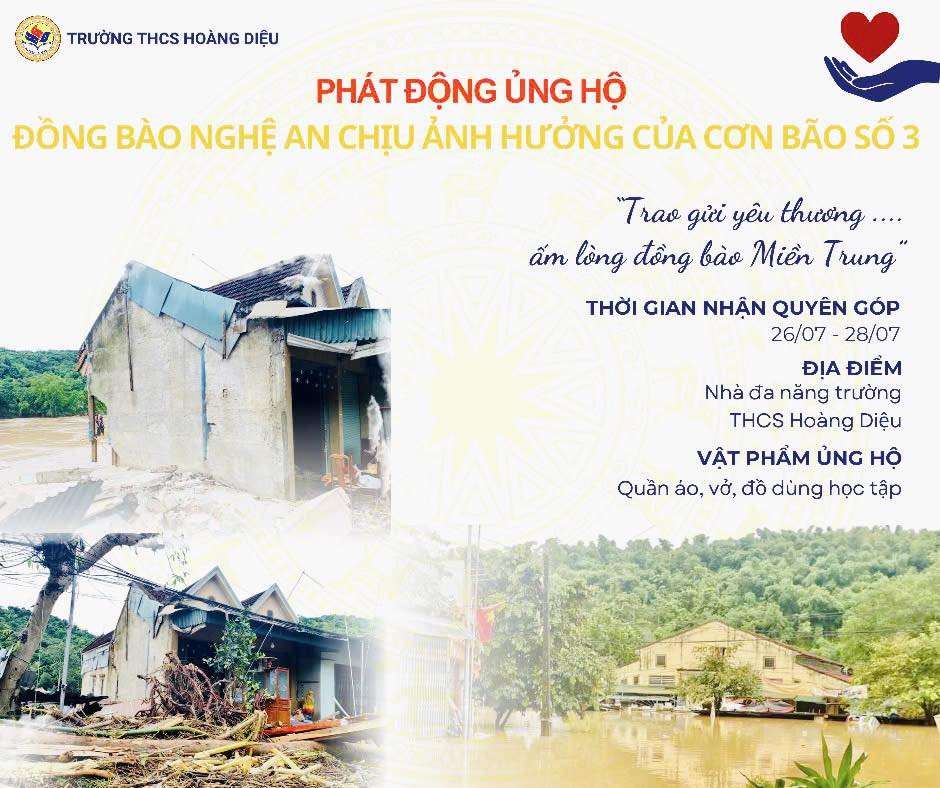 Trong những ngày qua, hưởng ứng lời kêu gọi của Nhà trường, thầy cô giáo, phụ huynh và học sinh trường THCS Hoàng Diệu đã cùng chung tay quyên góp, ủng hộ người dân vùng lũ tỉnh Nghệ An.