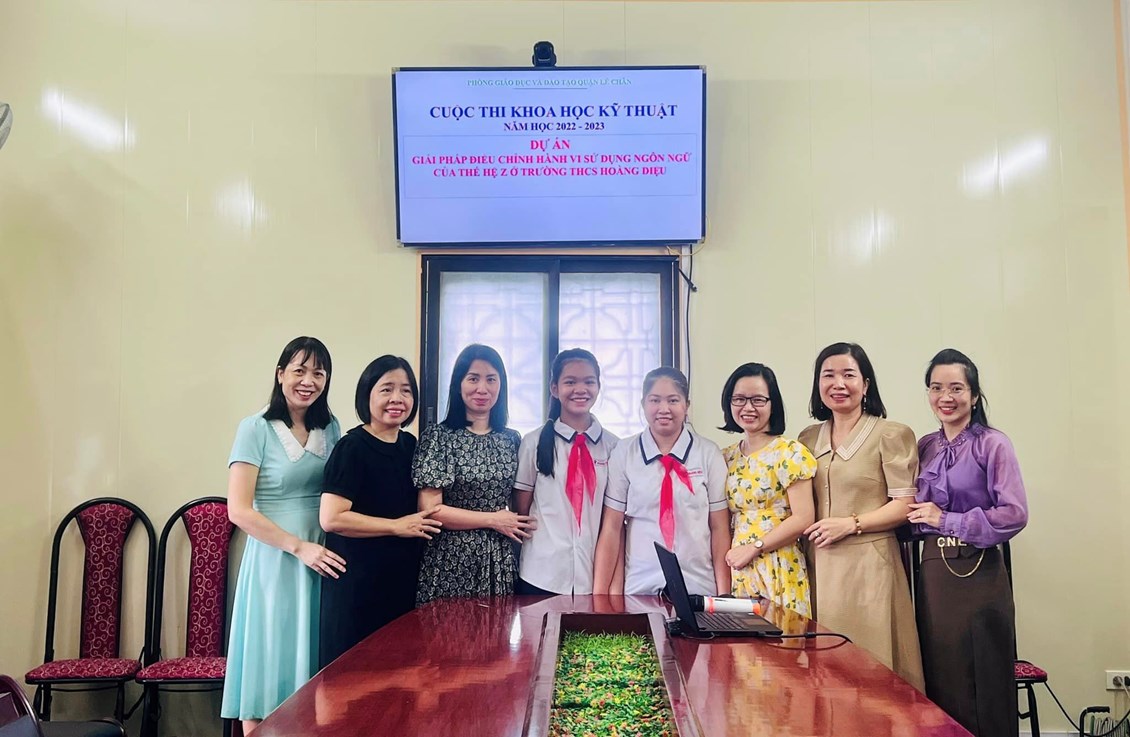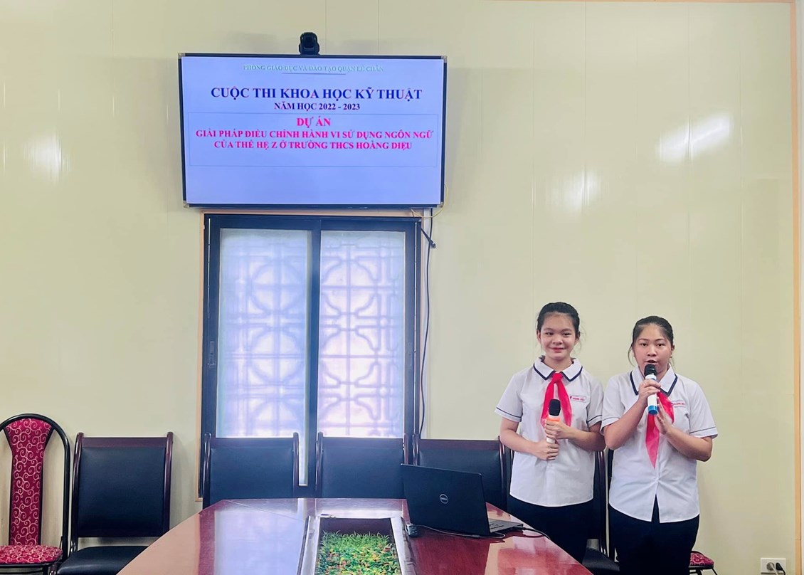 điều chỉnh hành vi sử dụng ngôn ngữ Gen Z ở trường THCS Hoàng Diệu” do em Nguyễn Bảo Sam Anh và em Vũ Ngọc Ngân – lớp 8B6 thực hiện, dưới sự hướng dẫn của cô giáo Đặng Thị Phương Thảo.